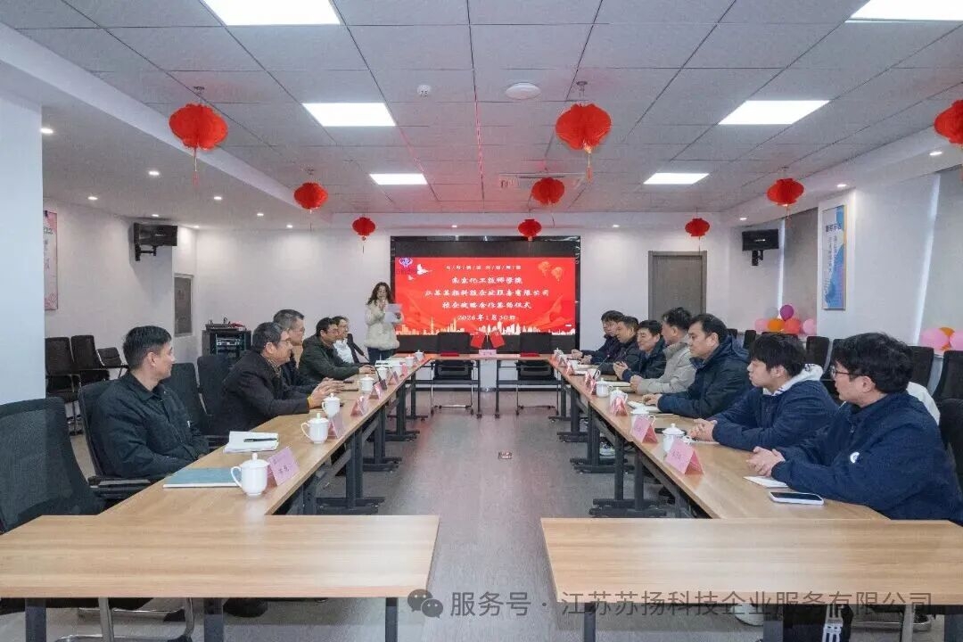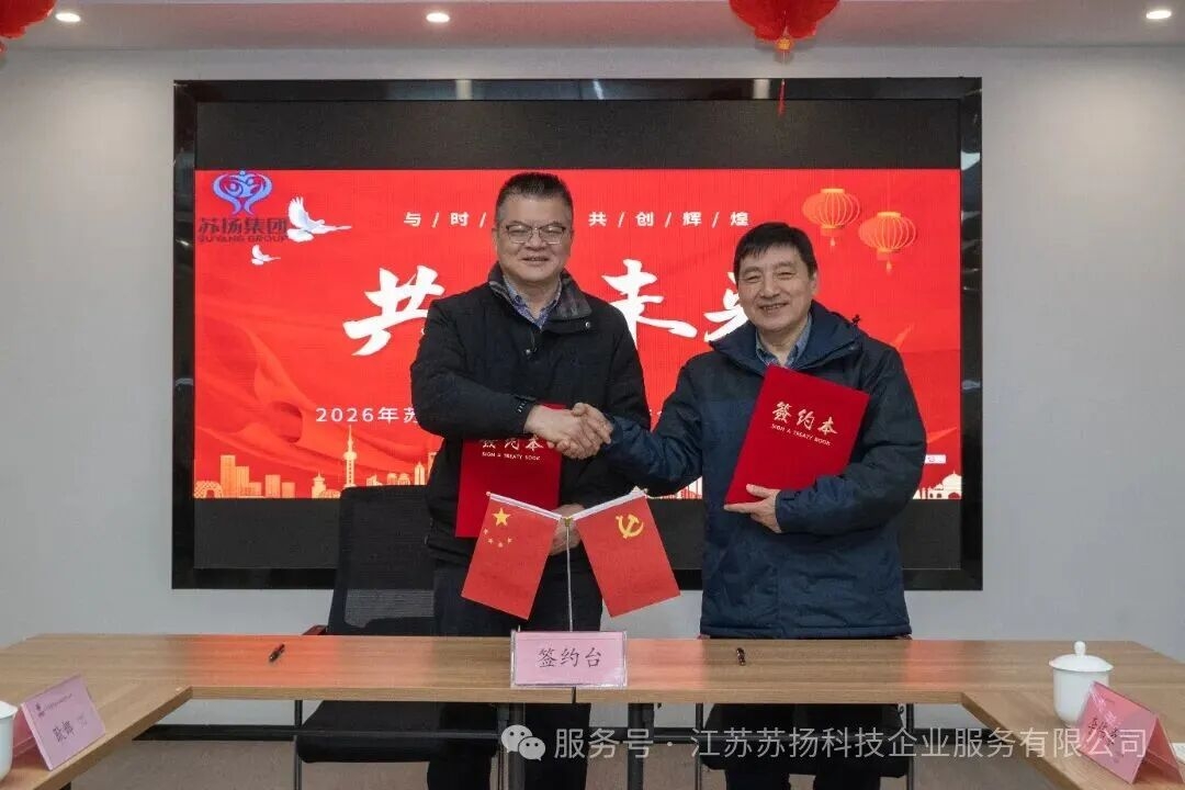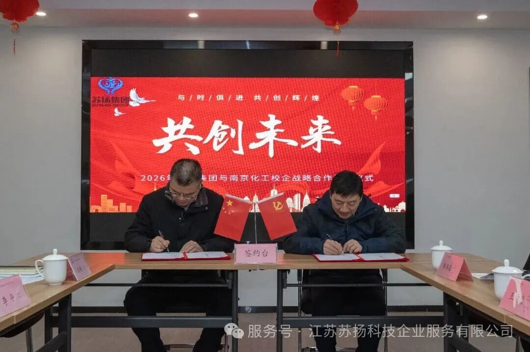 2026年1月30日,江苏苏扬科技企业服务有限公司与南京化工技师学院与校企合作签约圆满举行,共绘人才培育新蓝图。当教育的深耕细作遇上企业的实践赋能,一场关乎人才培育、产业升级的战略合作正式启航。本次签约仪式得到了多方重视与支持,南京江北新区大厂街道党工委副书记陈果莅临现场指导,南京化工技师学院校长郑骏、副校长潘群等校领导携教师代表、优秀学生代表出席,苏扬公司董事长沈学飞、总经理沈庆和等企业领导及相关部门负责人共同参与,见证这一重要时刻。