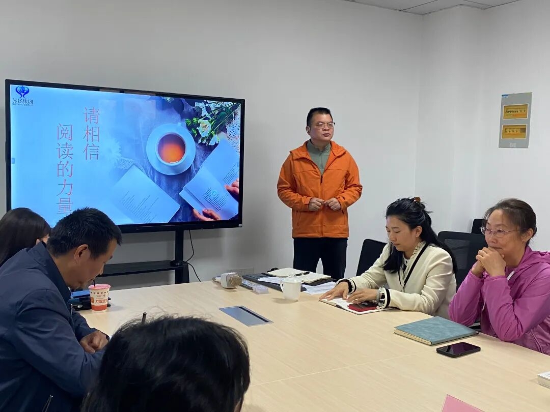 最后,江北新区图书馆李亚男主任也作了分享,对我们的读书活动给予高度赞许,他们鼓励全民阅读,但是真正能够做到把读书作为企业文化的企业不多,并建议形式可以更多样,比如共读一本书或者分主题阅读等丰富多彩的阅读活动。