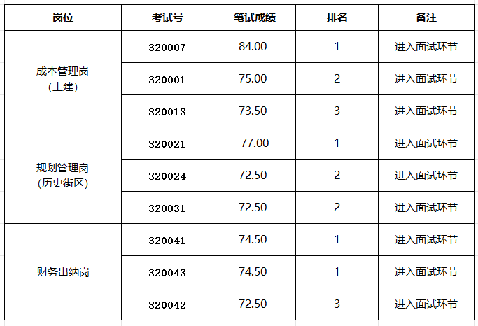 南京某国有企业2026年公开招聘进入面试人员成绩公布