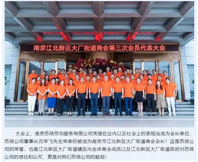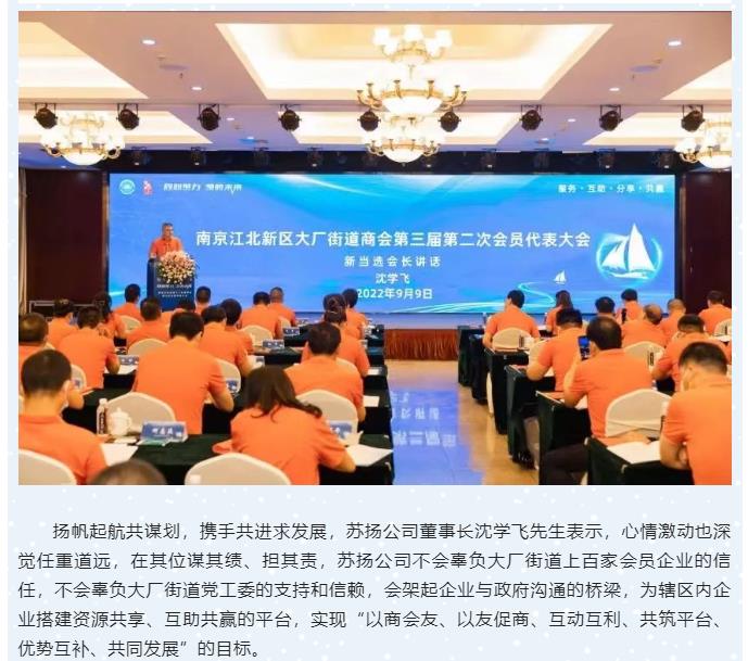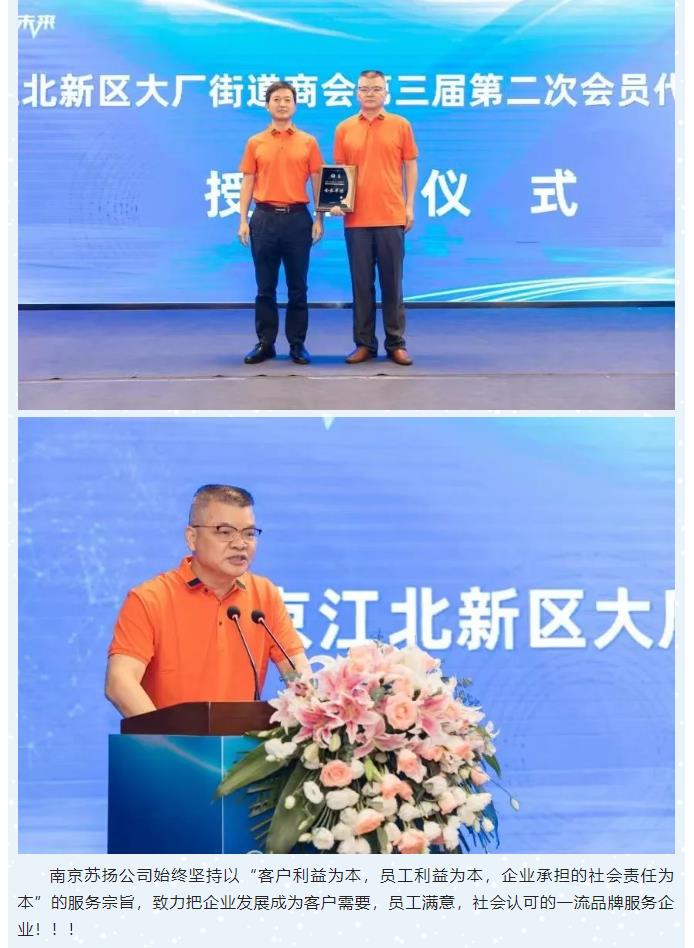 喜报: 南京苏扬公司荣获江北新区大厂街道会长单位