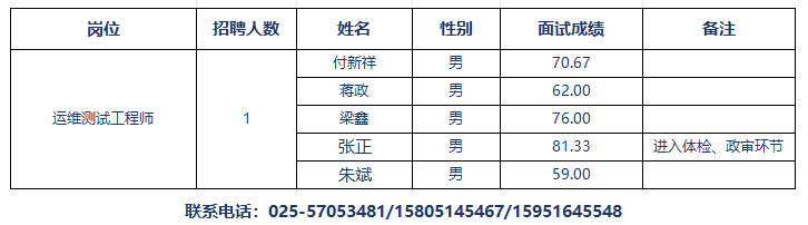 按拟招录人数的1:1比例安排进入体检、体检政审环节,现将面试结果公布如下: